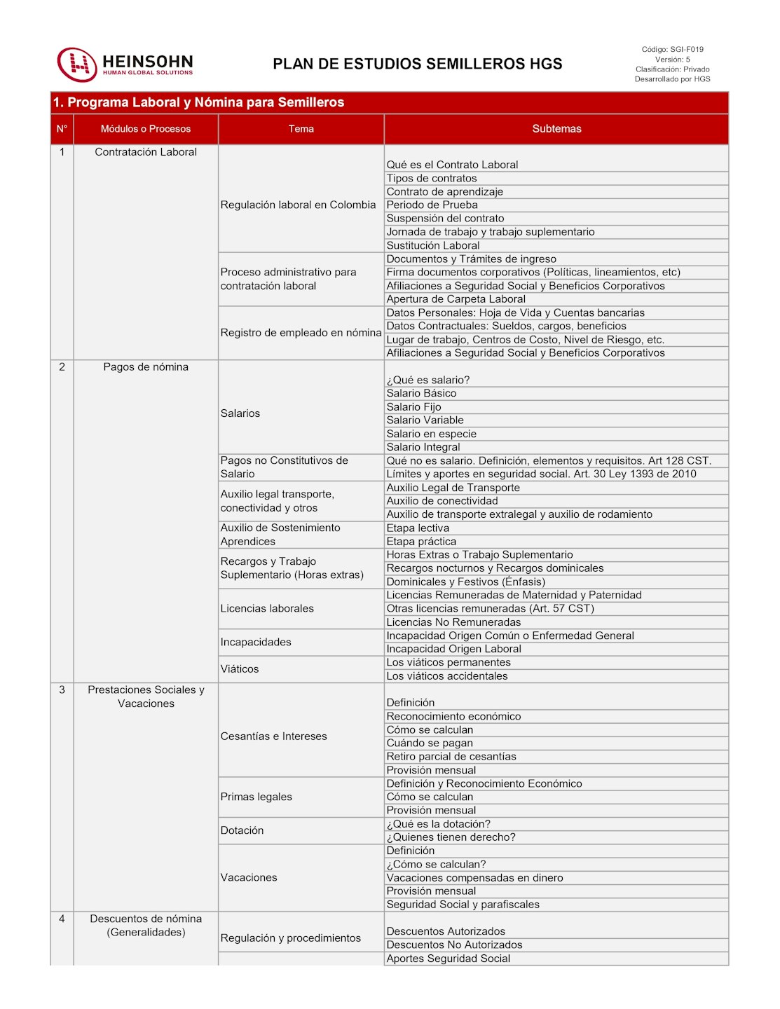 Heinsohn HGS te da la bienvenida a su Programa de Formación en Laboral y Nómina.