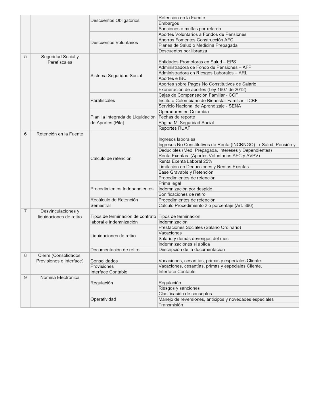 El plan de estudios ha sido desarrollado siguiendo el modelo del flujo de operación de una nómina real, partiendo de los aspectos normativos y acompañándolos con los procesos de cálculo de nómina o procedimentales de administración de personal.